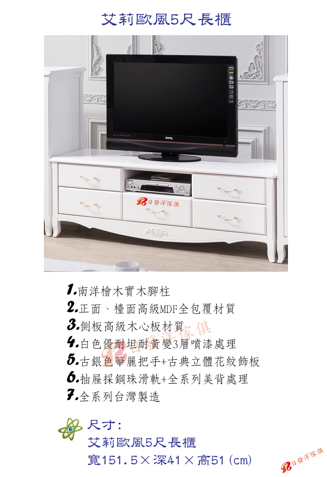 - 品名:B332-05艾莉歐風5尺長櫃