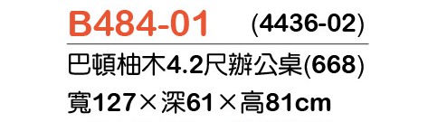 品名:B484-01巴頓柚木4.2尺辦公桌