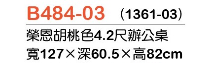 品名:B484-03榮恩胡桃4.2尺辦公桌