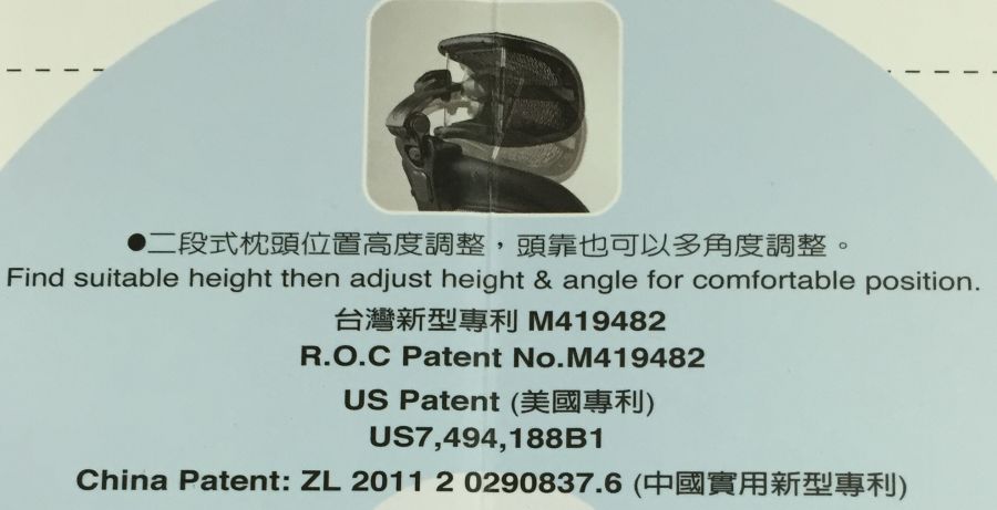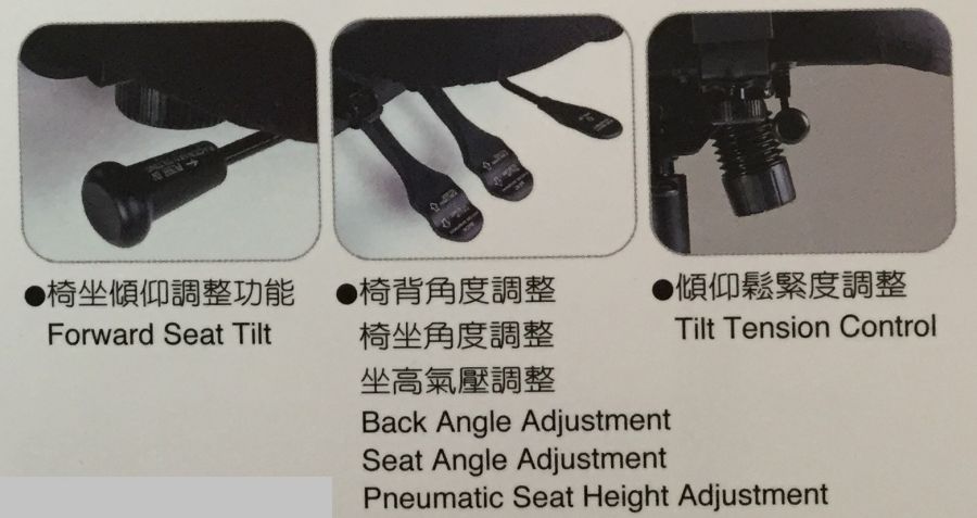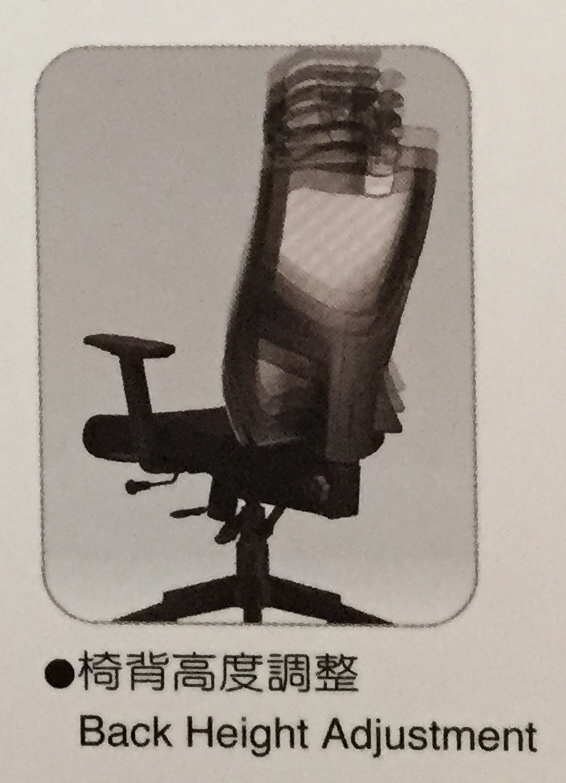 - 特點5:Y型頭枕支架,2段式高度及角度調整。