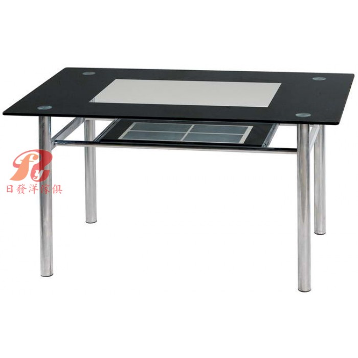 富貴烤黑束管腳玻璃餐桌