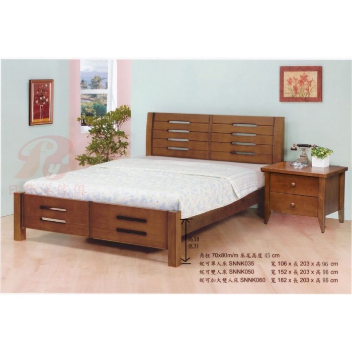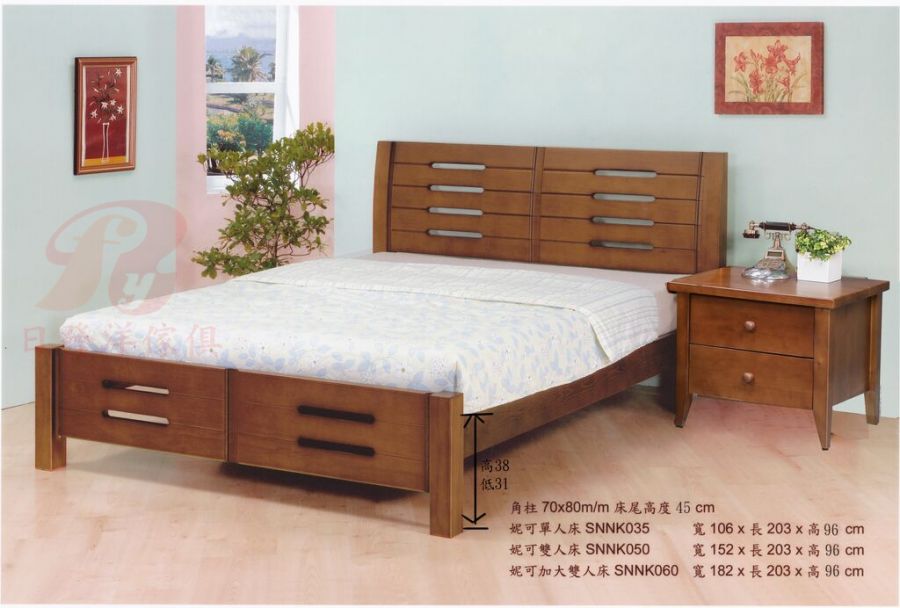 - 特點1:角柱70×80(mm),床尾高度45cm