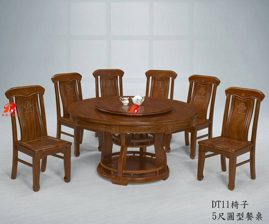 5尺黃花梨木圓型餐桌椅