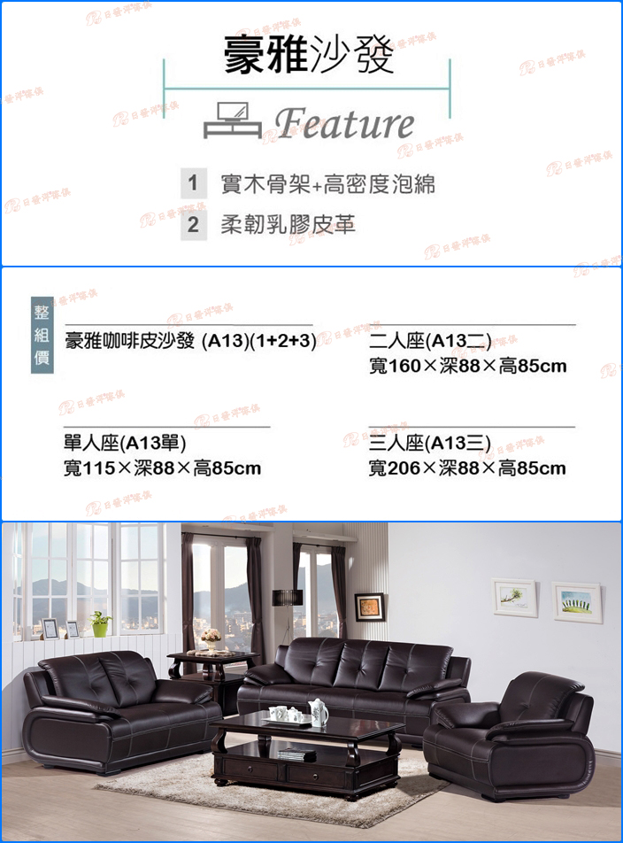 - 品名:B253-01豪雅咖啡皮沙發(1+2+3)