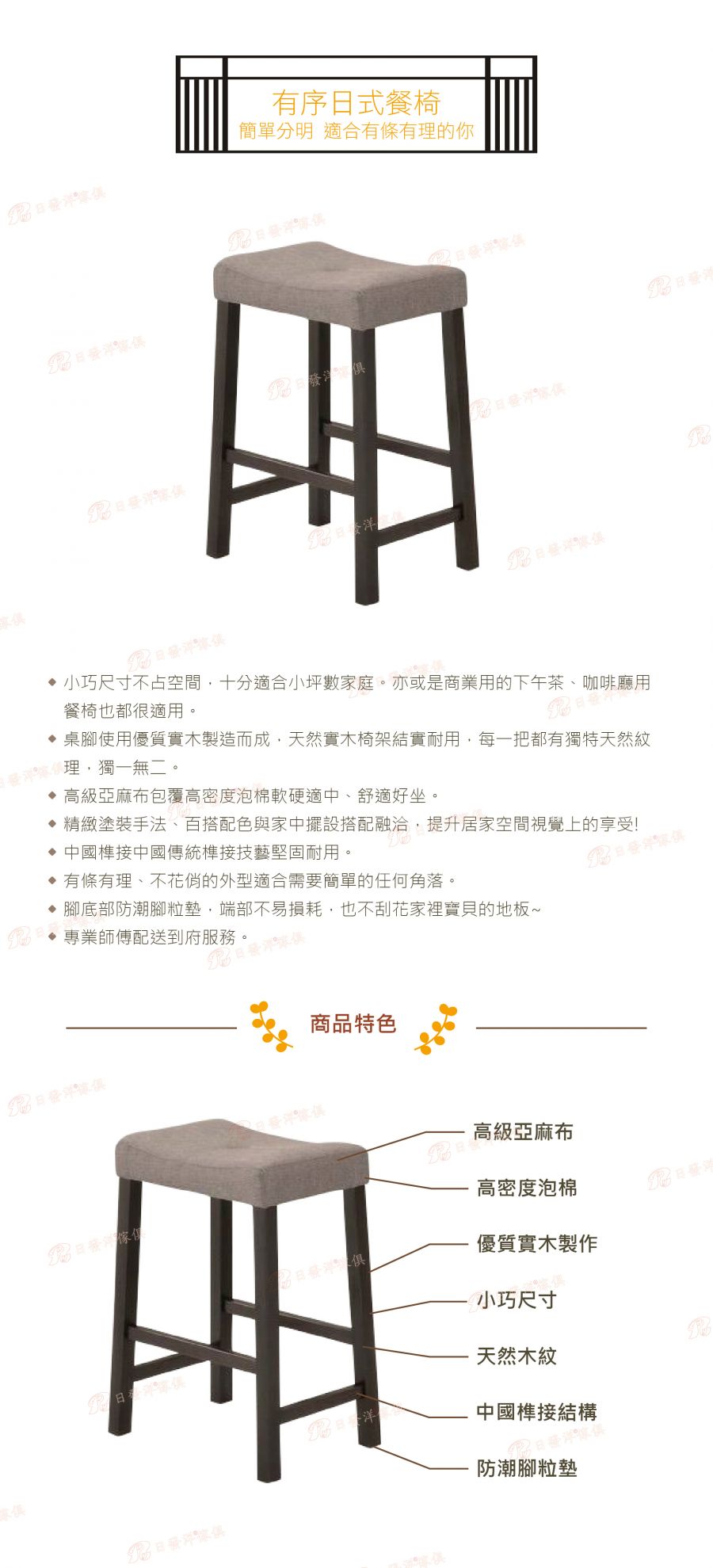 - 品名:CK016有序日式吧檯餐椅(透氣灰色亞麻布)
