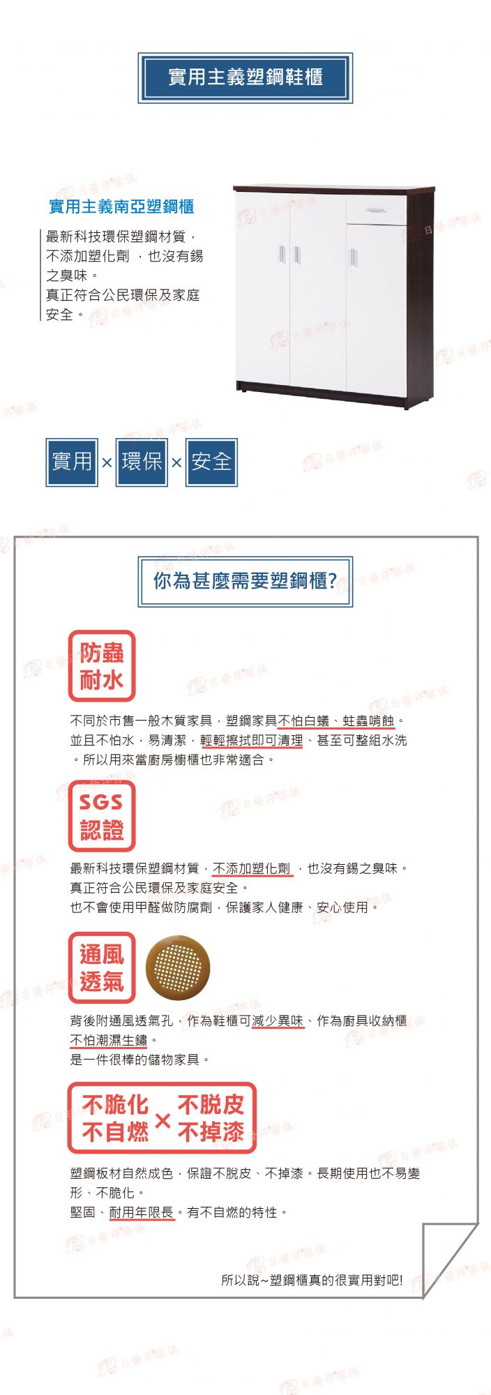 - 品名:SH-301塑鋼鞋櫃(白門&胡桃色)