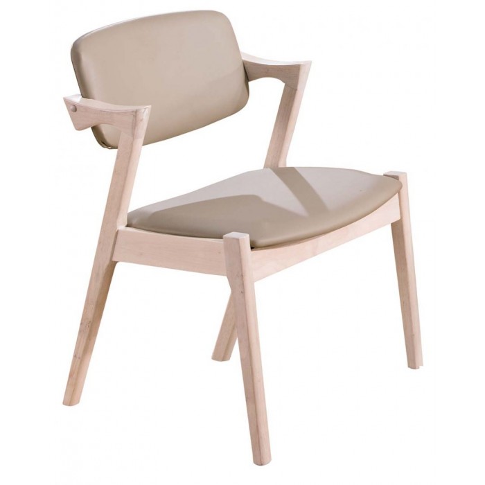 A467-02莫德原木雙扶手亞麻皮餐椅(白皮)