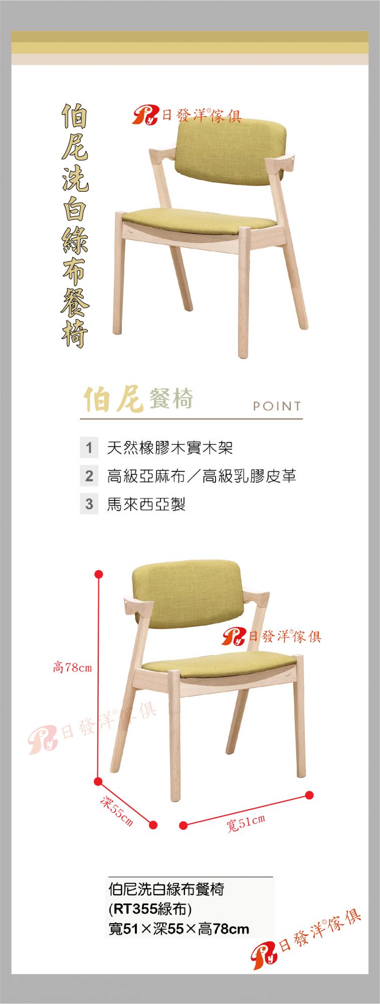 - 品名:A461-02伯尼洗白綠布餐椅(綠布)