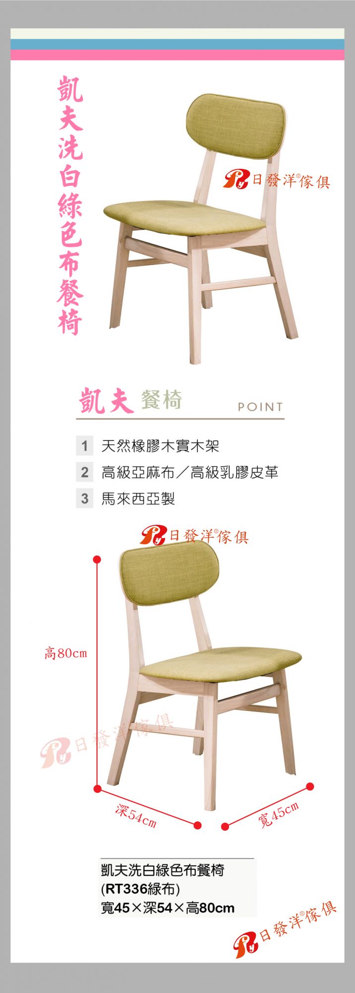 - 品名:A462-05凱夫洗白綠色布餐椅