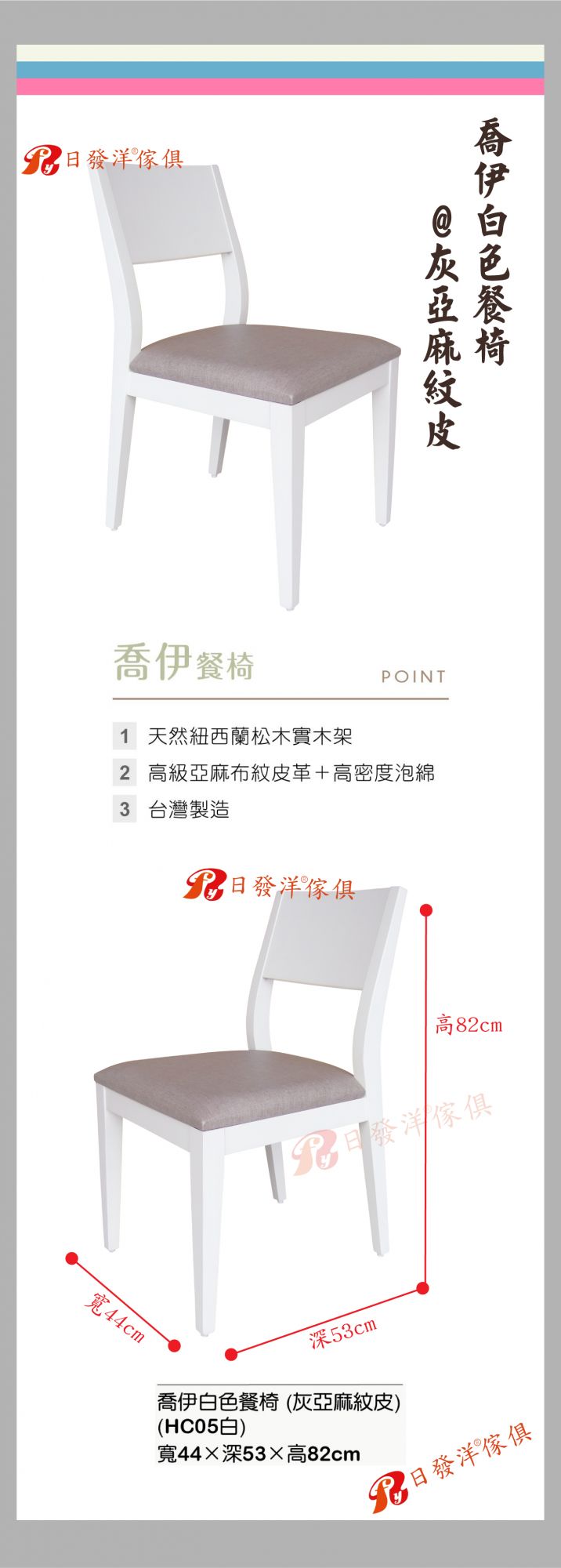 - 品名:A472-04喬伊白色餐椅(灰亞麻紋皮)