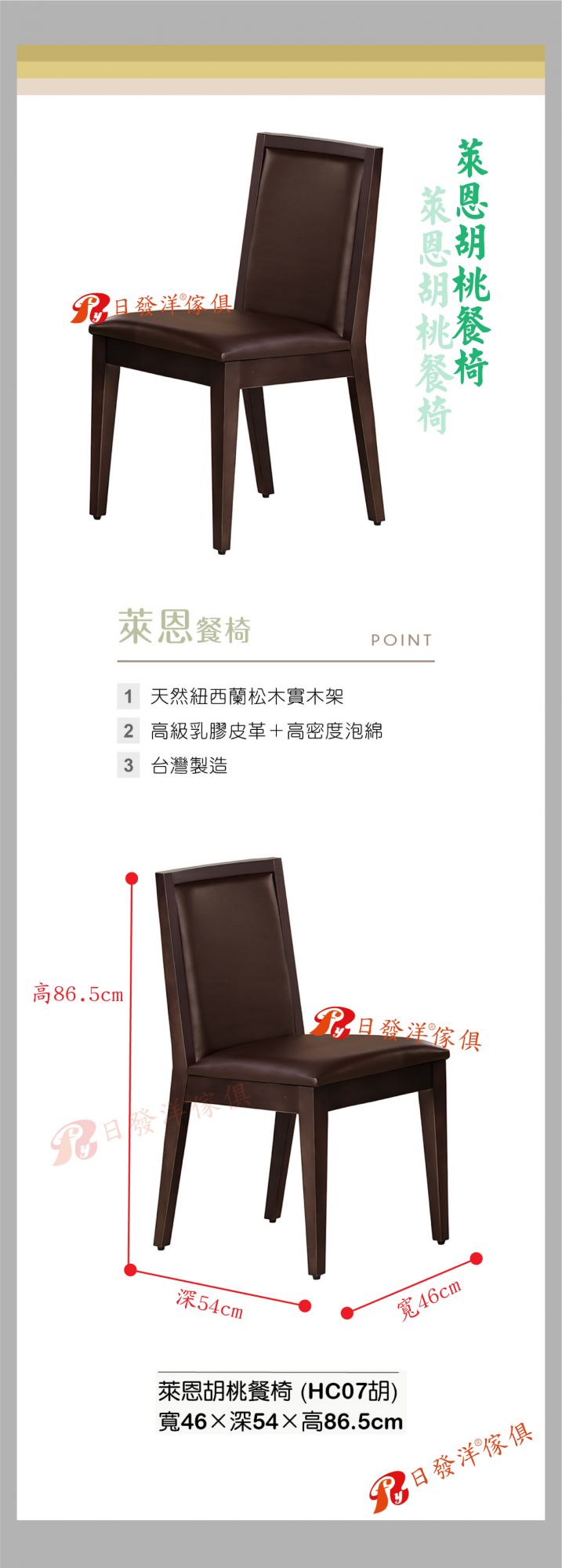 - 品名:A481-02萊恩胡桃餐椅