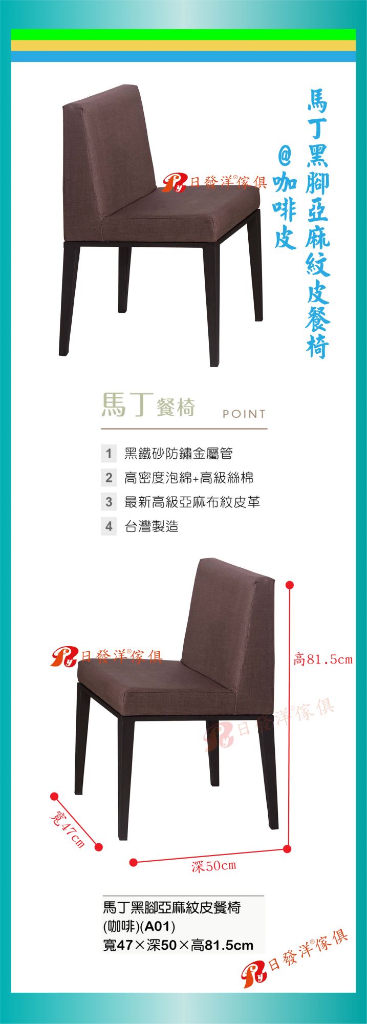 - 品名:A451-03馬丁黑腳亞麻紋皮餐椅(咖啡皮)