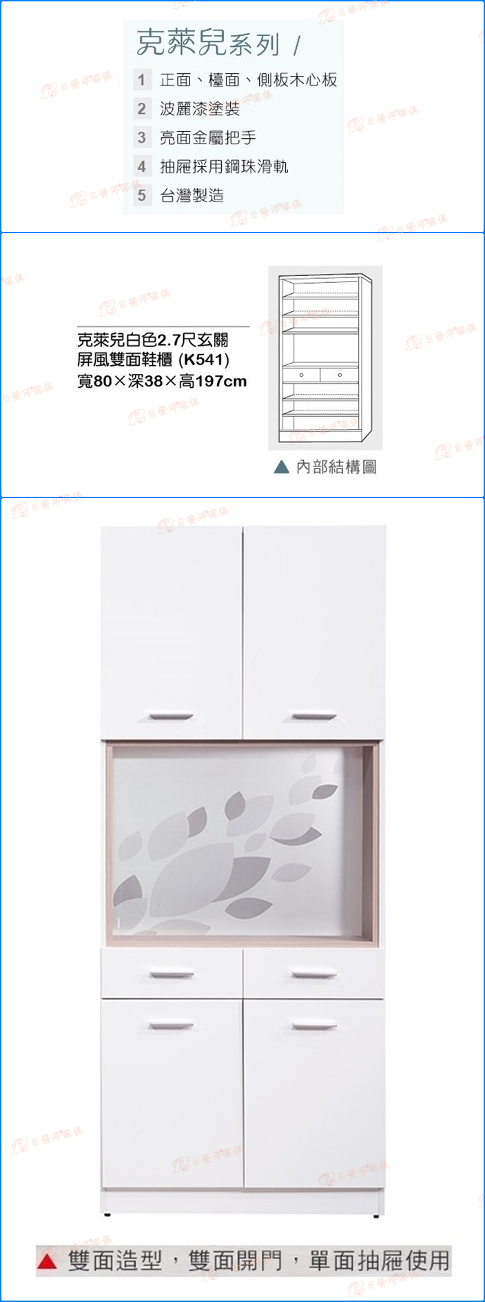 克萊兒白色2.7尺玄關屏風雙面鞋櫃
