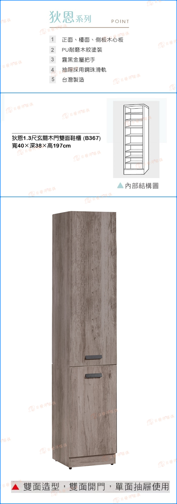 - 品名:A385-02狄恩1.3尺玄關木門雙面鞋櫃