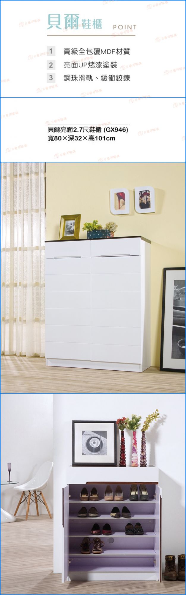 - 品名:A395-06貝爾亮面2.7尺鞋櫃