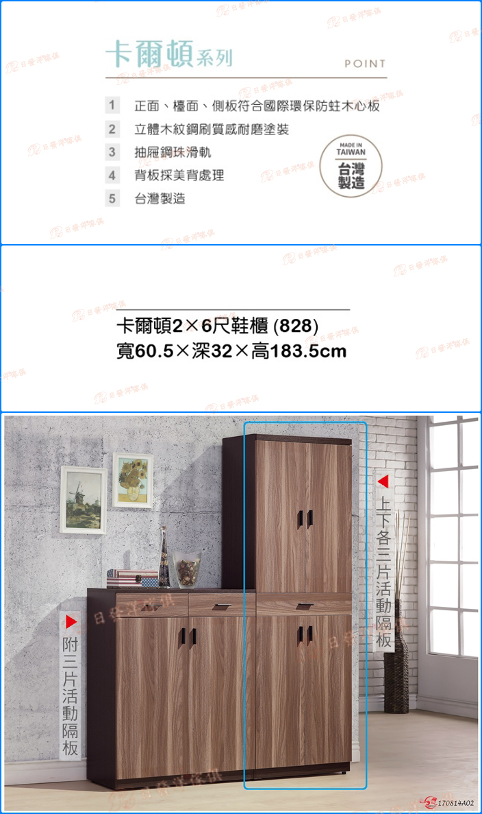- 品名:A397-10卡爾頓2×6尺鞋櫃