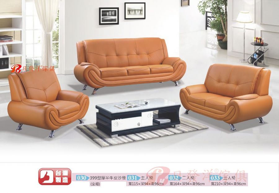 - 單品3:399型厚半牛皮沙發三人椅
