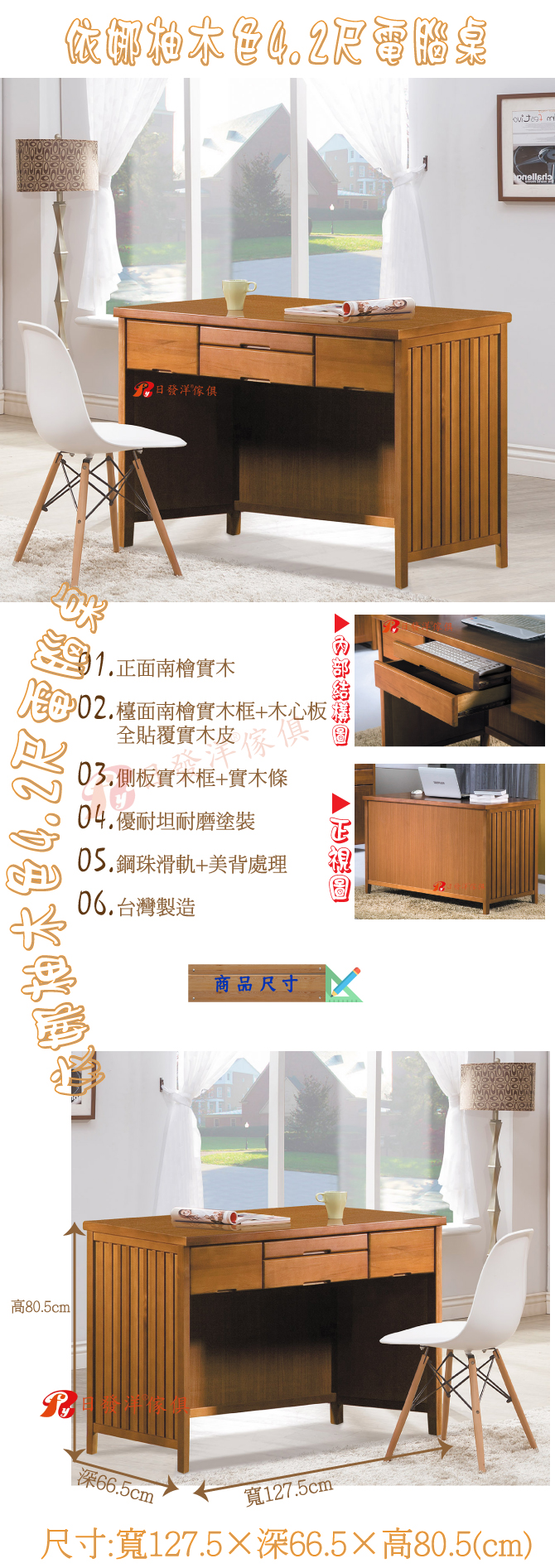 榮恩正赤陽木3.5尺書桌