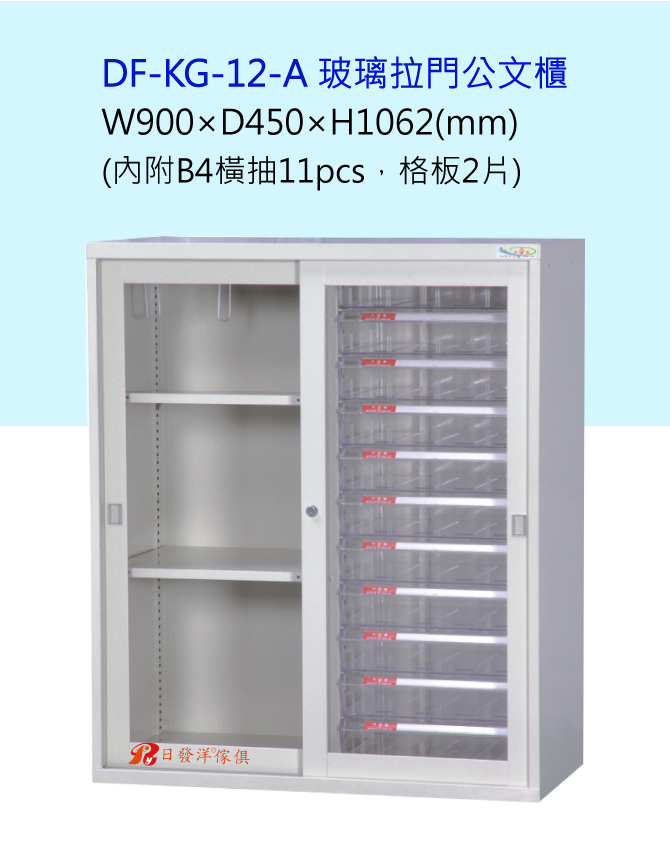 - 品名:DF-KG-12-A 玻璃拉門公文櫃