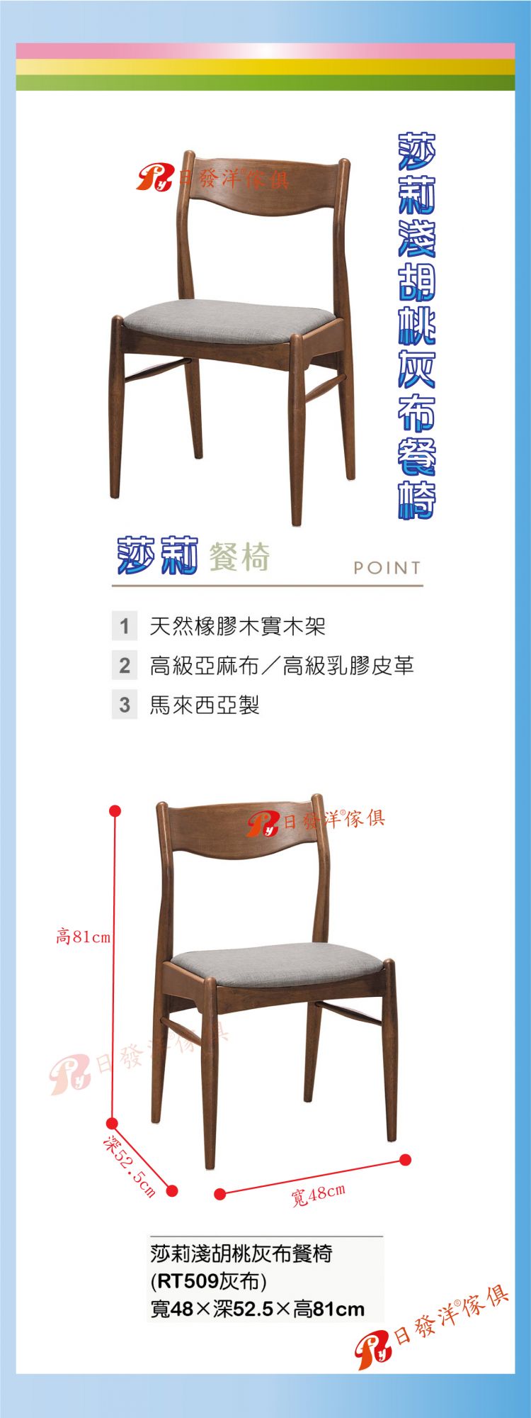 - 品名:A479-02莎莉淺胡桃灰布餐椅