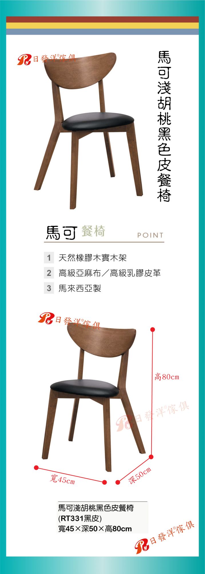 - 品名:A480-02馬可淺胡桃黑色皮餐椅