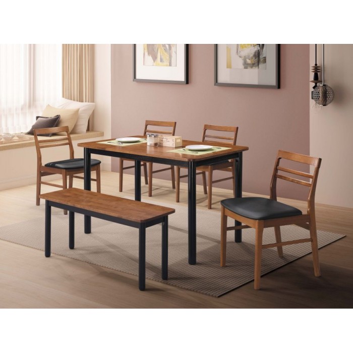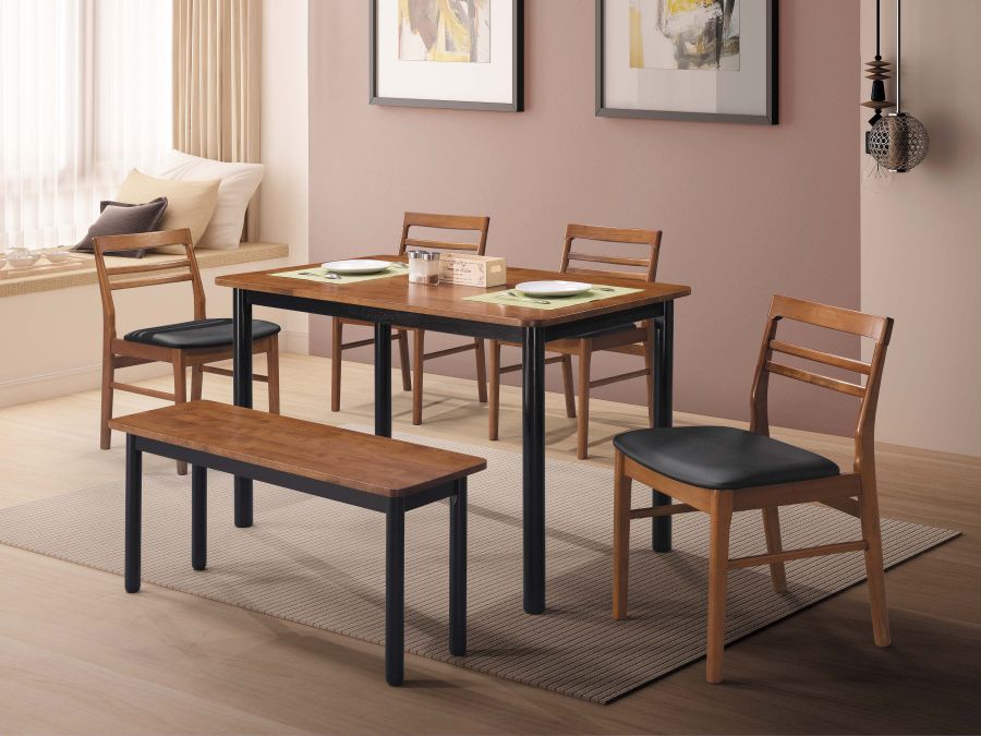 伊諾克6尺淺胡桃全實木黑腳餐桌