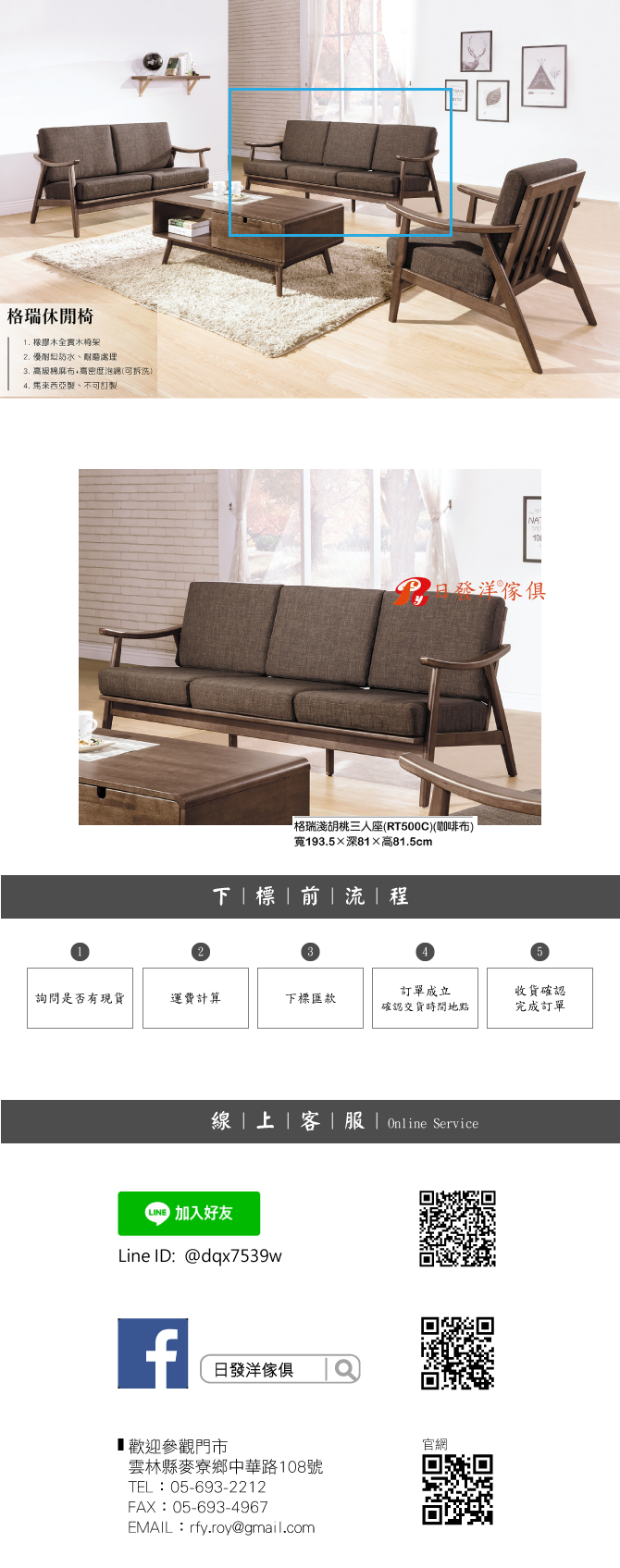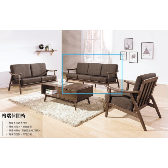 格瑞淺胡桃L型休閒椅組(咖啡布)(三人座+腳凳)