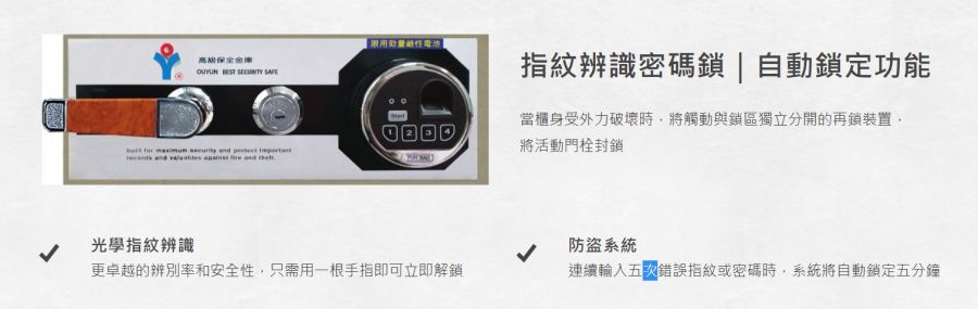 619-7 光學指紋辨識金庫(6DS/自動鎖定)