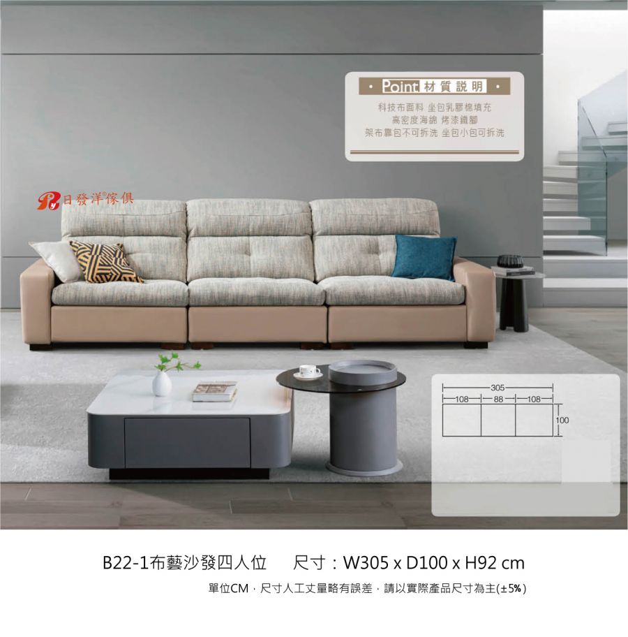 - 複合品項:B22-1布藝沙發四人位_24MJ303