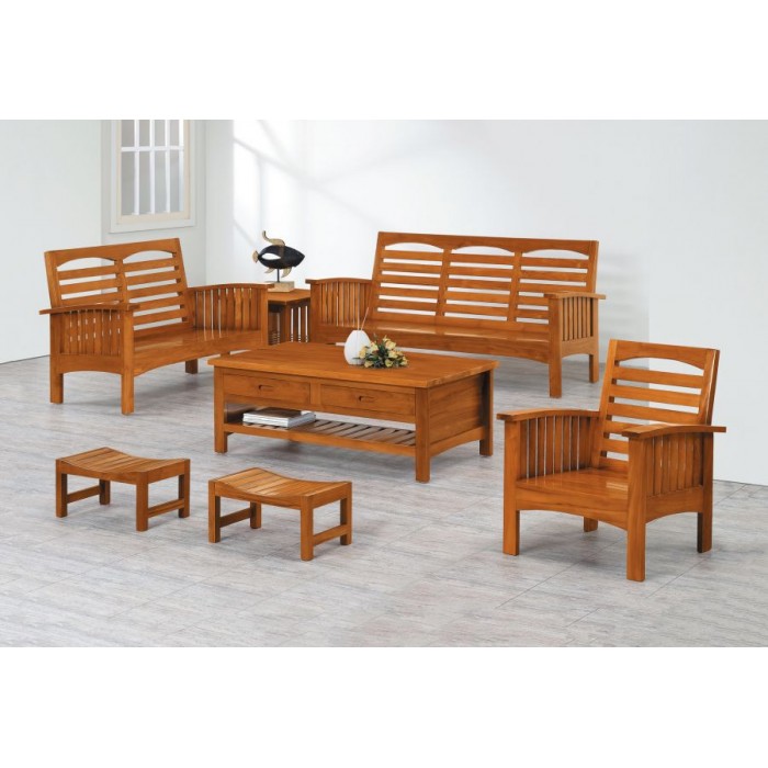 大阪神正印尼柚木L型組椅(全組)(含布椅墊)