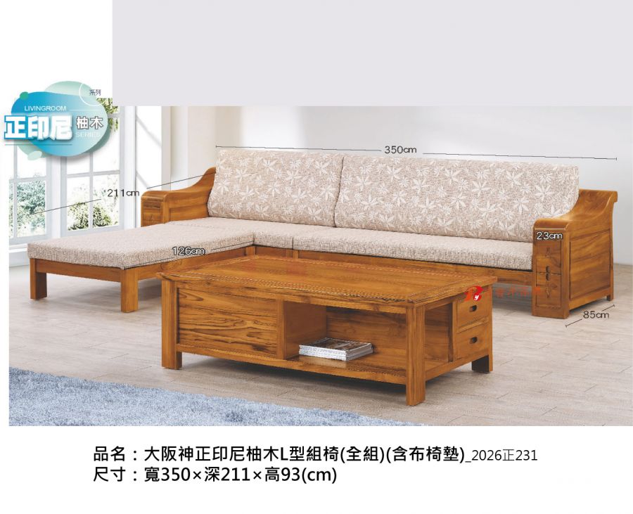 品名:大阪神正印尼柚木L型組椅(全組)(含布椅墊)_2026正231