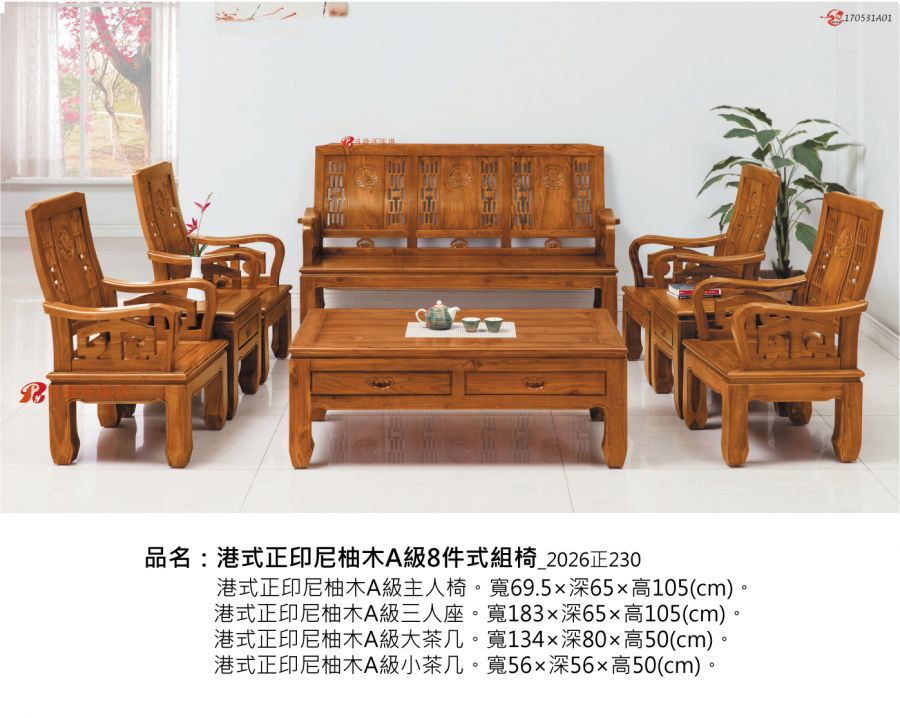 品名:港式正印尼柚木A級8件式組椅_2026正230