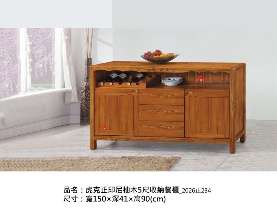 - 品名:虎克正印尼柚木5尺收納餐櫃_2026正234