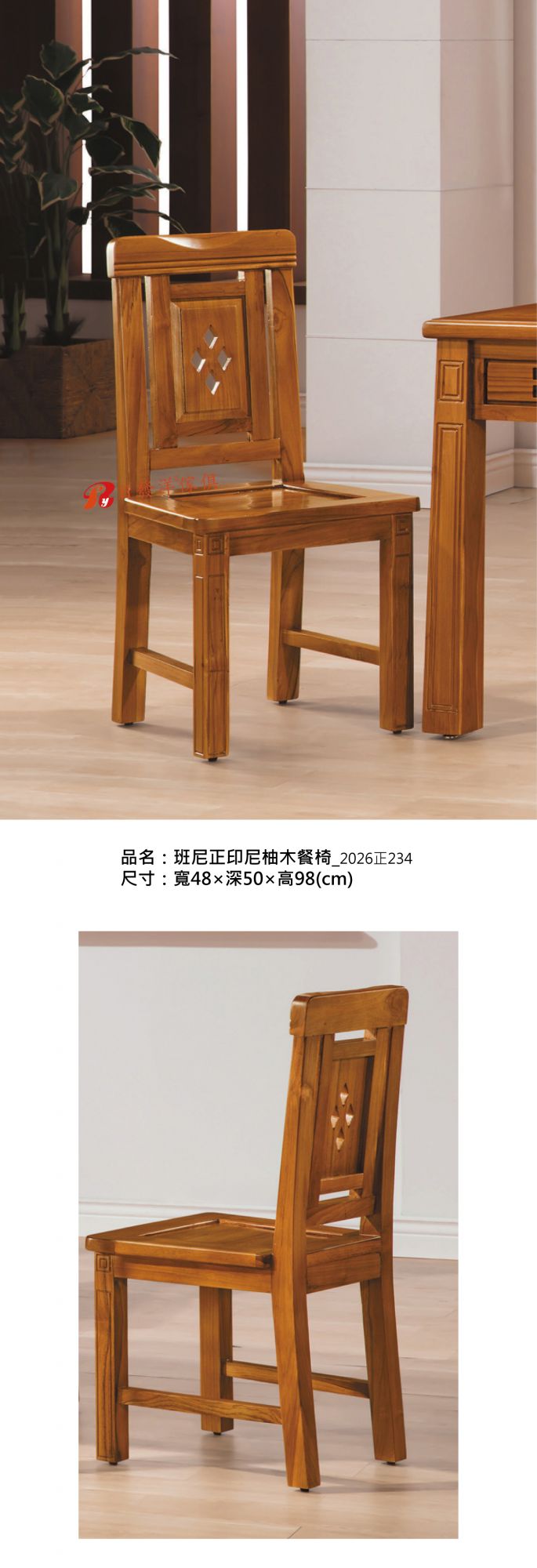 - 品名:班尼正印尼柚木餐椅_2026正234