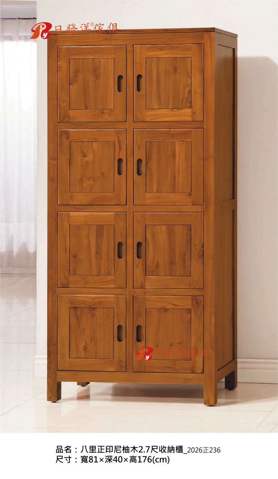 - 品名:八里正印尼柚木2.7尺收納櫃_2026正236