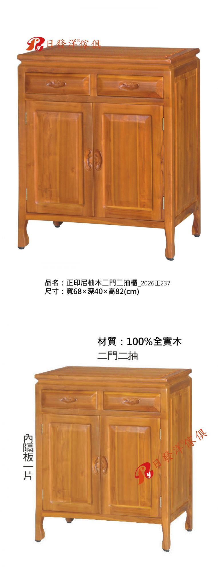 品名:正印尼柚木二門二抽櫃_2026正237