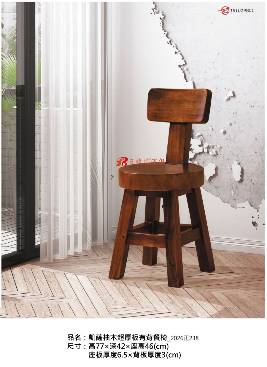 - 品名:凱薩柚木超厚板有背餐椅_2026正238