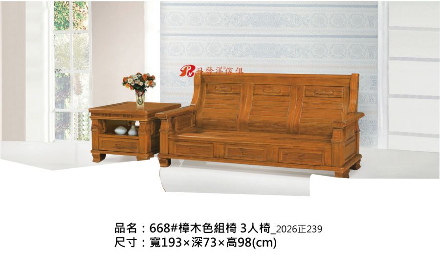 - 品名:668#樟木色組椅 3人椅_2026正239