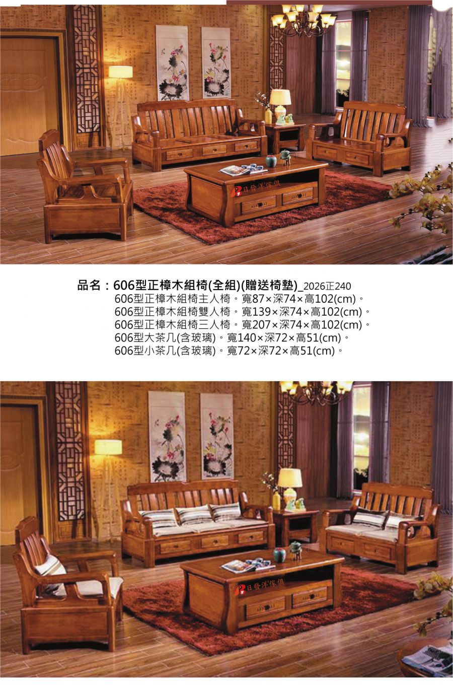 - 品名:606型正樟木組椅(全組)(贈送椅墊)_2026正240