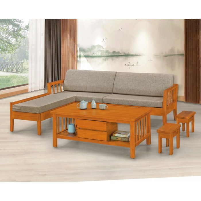 5014伊凡楠檜實木L型布沙發組椅(全組)