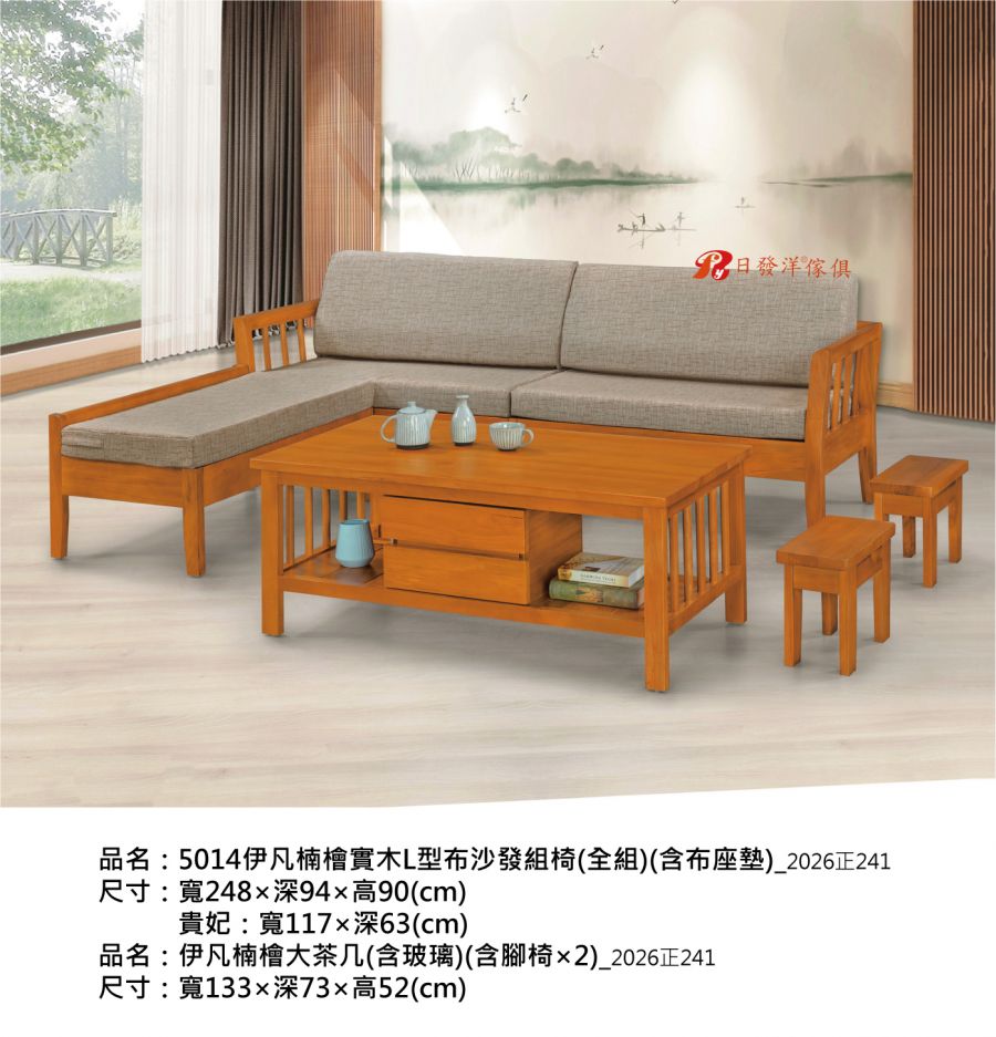 - 品名:5014伊凡楠檜實木L型布沙發組椅(全組)(含布座墊)_2026正241