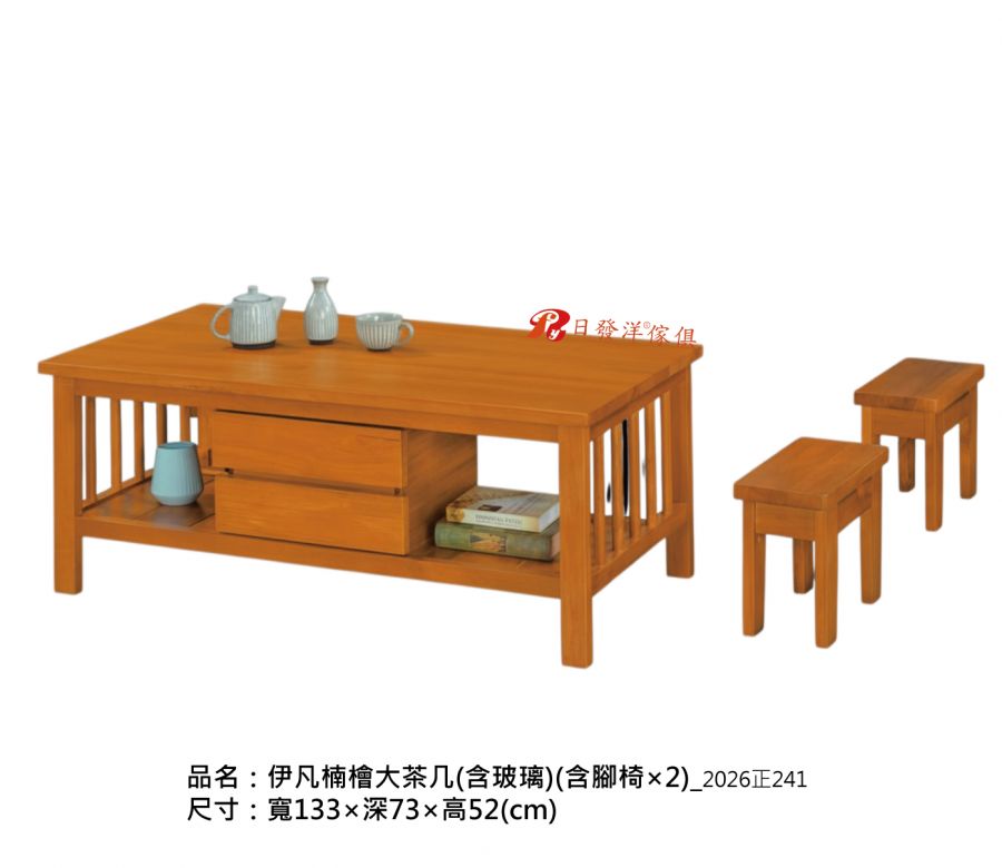 - 品名:伊凡楠檜大茶几(含玻璃)(含腳椅×2)_2026正241