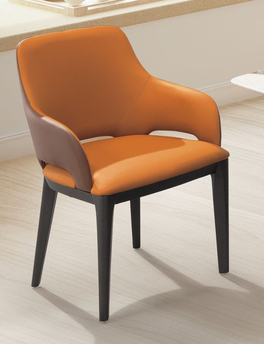 A490-06約瑟夫實木雙扶手餐椅(橘色皮)_2026hy